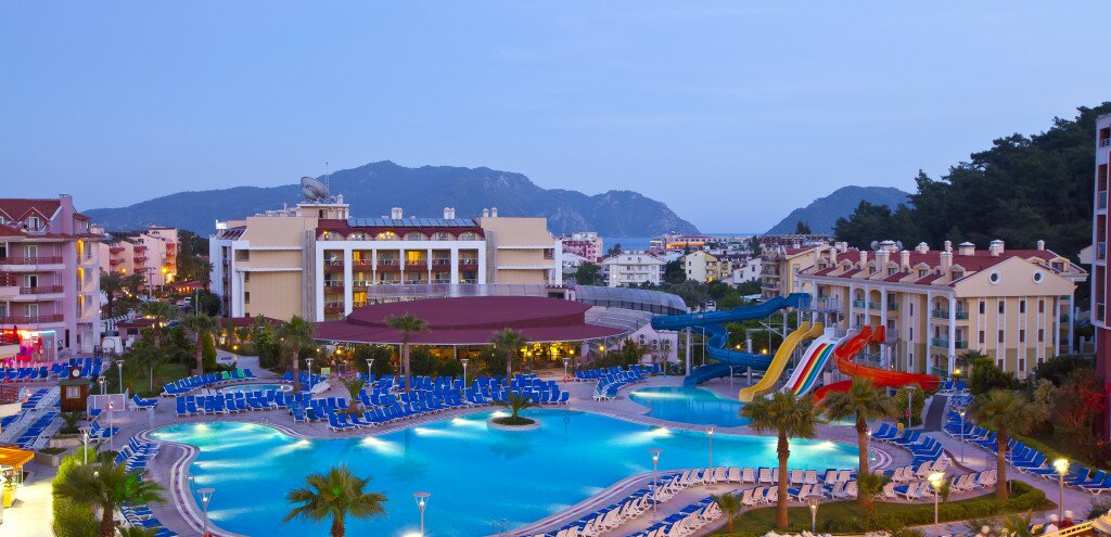 The Hotel Green Nature Resort & SPA is located beside a pine forest, about 90 km from Dalaman airport away and 3 kilometres from Marmaris town centre where you can find a large array of restaurants, bars and shops. The Green Nature Resort offers more than 630 rooms.There are 3 pools, and waterslides offering fun for all ages.